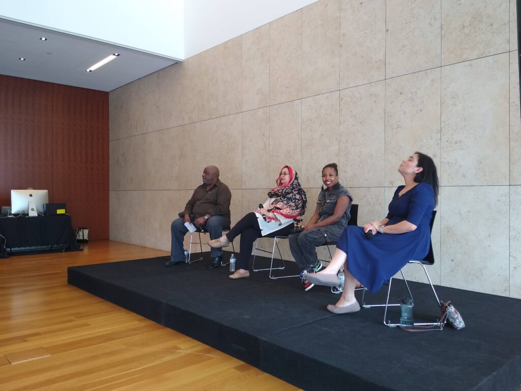 Aprendí mucho del panel sobre el teatro en Houston con Tazeen Zahida, ShaWanna Renee Rivon, y Marissa Castillo (de TEATRX). El moderador, Errol Anthony Wilks, nos contó cómo Houston es la segunda ciudad con más asientos de teatro per cápita, después de Nueva York. Las panelistas nos platicaron sobre sus obras que trataban temas como la ausencia de los papás, los juguetes sexuales, y la segregación racial. Cada cual buscaba romper barreras y tabúes y hasta echar luz sobre los rincones más oscuros de la sociedad. Rivon, en particular, nos dijo que escoge lo que no se ha contado, especialmente si la historia permanece en su mente.